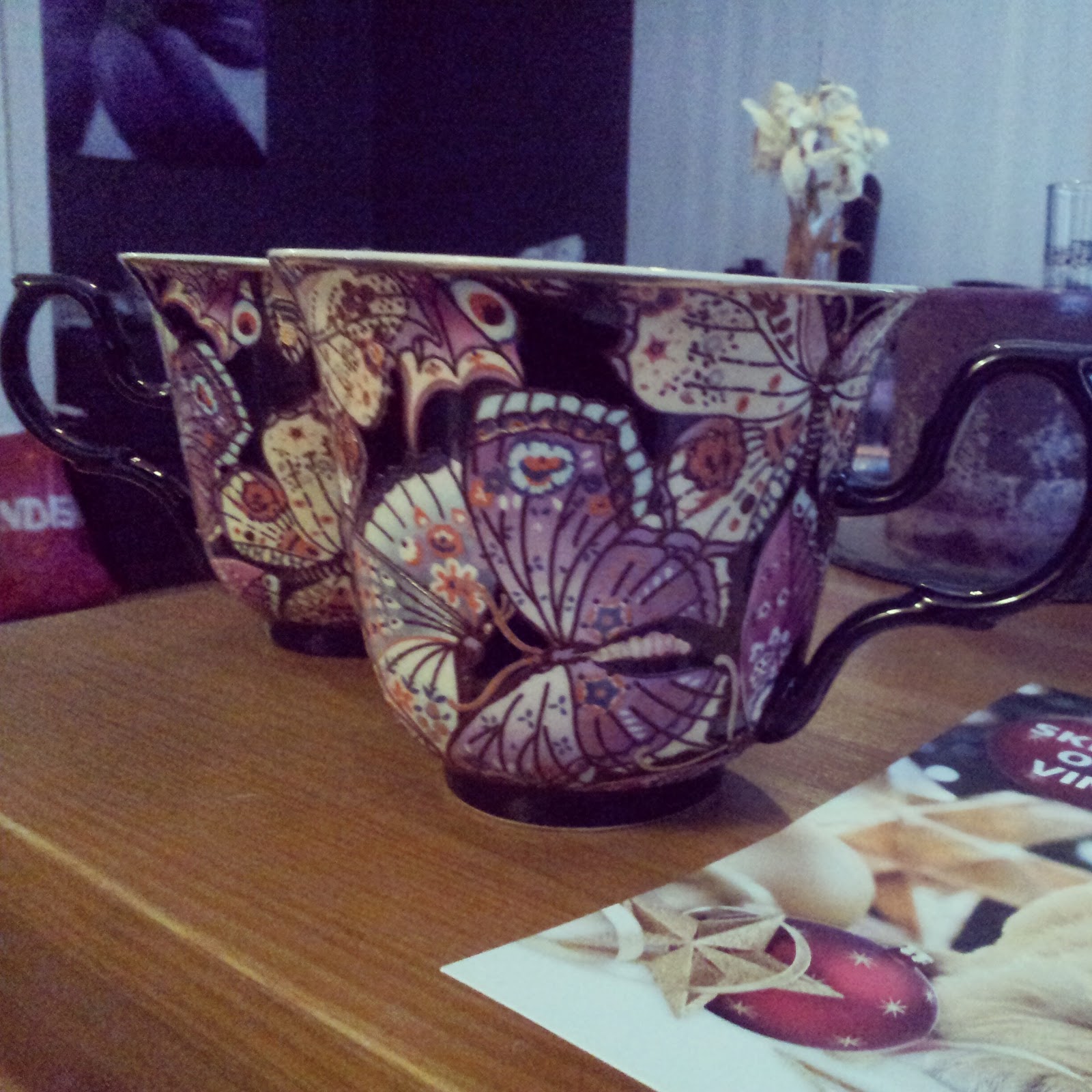 Ja men just ja! Glömde ju att igår träffade jag S. Satt och pratade medan hon gjorde mat. Sen från ingenstans plockar hon fram en påse. Hon ger mig en födelsedagspresent! Blev så himla glad. Så sött. Fick två fina muggar från Indiska som jag sa att jag gillade förut när jag och S var ute och shoppade. Hur fint är inte det att komma ihåg en sån sak? Värmde mitt hjärta.
